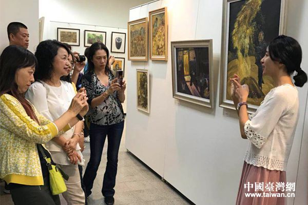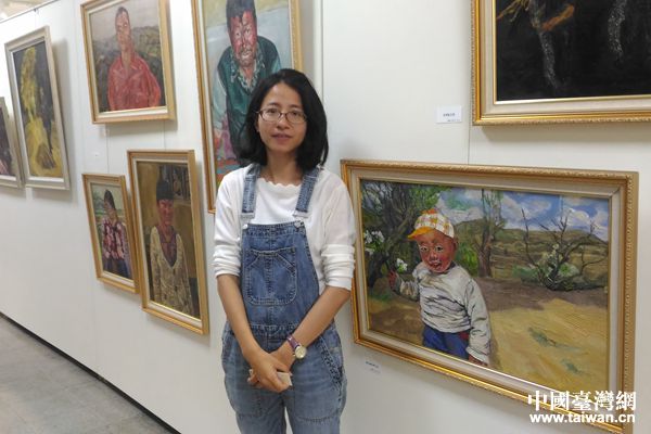 廖哲琳在臺灣藝術大學學生藝廊畫展現場留影。(圖片來源:陜西省臺辦)