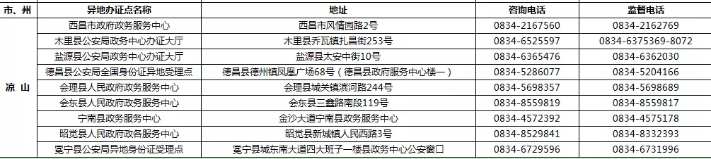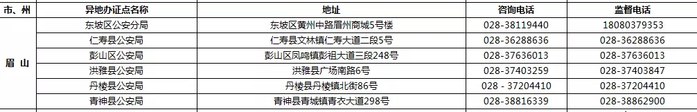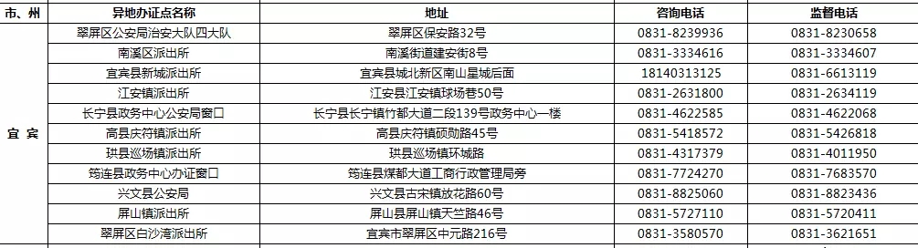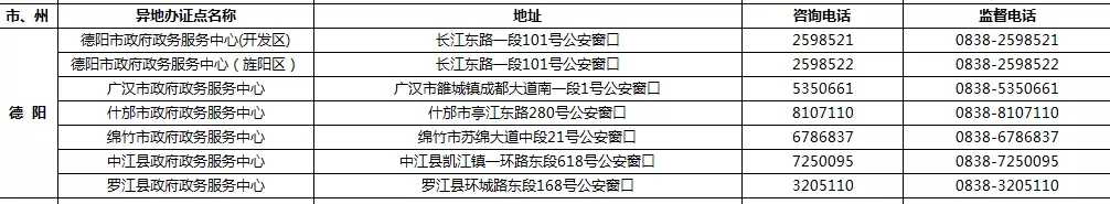 四川省港澳臺居民居住證受理點名稱、地址,咨詢及監督電話: