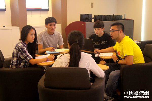 臺灣大學(xué)實習(xí)生在進行小組討論(中國臺灣網(wǎng) 陳文韜 攝)