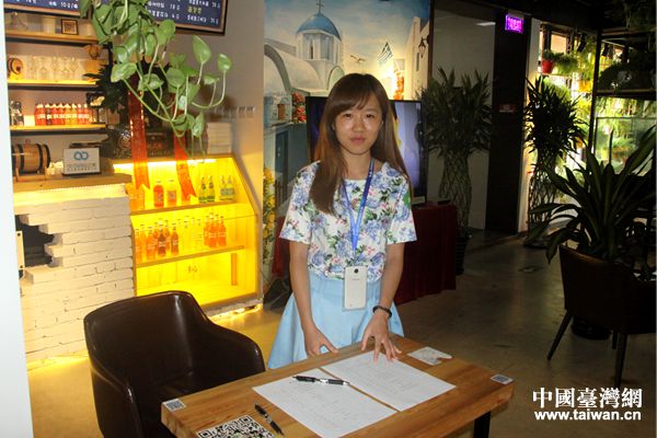 臺灣大學生潘俐曄在一次活動中負責簽到和布置會場(中國臺灣網 陳文韜 攝)