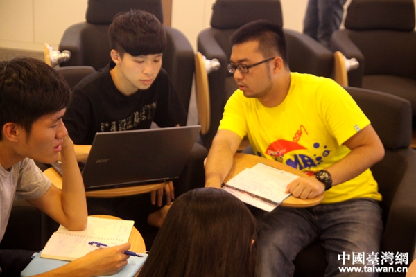 臺灣大學(xué)實(shí)習(xí)生在進(jìn)行小組討論(中國臺灣網(wǎng) 陳文韜 攝)