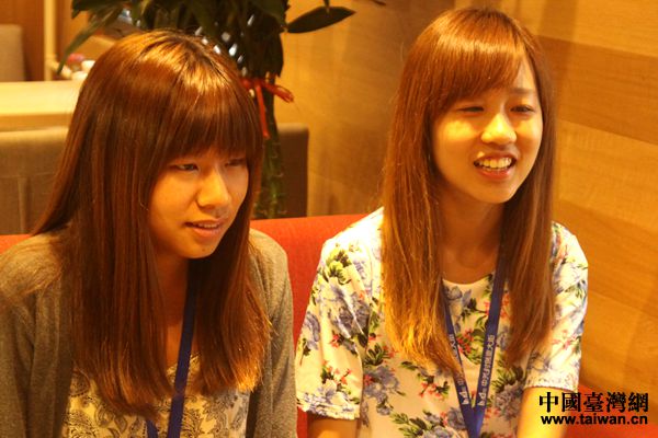 在創業大街實習的兩位臺灣大學生講解自己的收獲(中國臺灣網 陳文韜 攝)