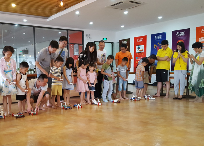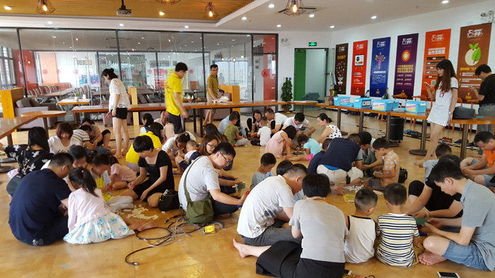 6月5日下午,一品創(chuàng)客集孵化美基地與小玩伴機(jī)器人創(chuàng)客空間聯(lián)合舉行了“親子科技周·親子游樂大比拼”活動。雖然天公不作美,下起了大雨,但是依舊擋不住家長和小朋友們的熱情,現(xiàn)場人氣爆棚。大、小朋友在咖啡廳進(jìn)行了一場場科技大比拼。