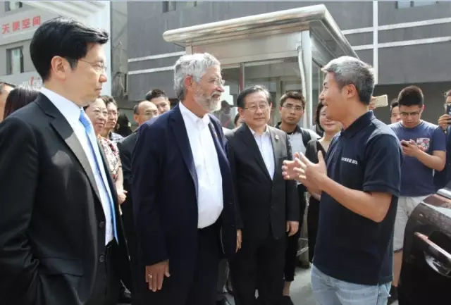 2016年6月7日,美國(guó)總統(tǒng)科技助理兼白宮科技政策辦公室主任John Holdren博士,美國(guó)白宮科技政策辦公室高級(jí)政策顧問Mahlet Mesfin,美國(guó)駐華使館科技官員 Dwain Atkinson攜代表團(tuán)一行參觀中關(guān)村創(chuàng)業(yè)大街。全國(guó)政協(xié)副主席、科技部部長(zhǎng)萬鋼,科技部火炬中心主任張志宏,北京市科委主任閆傲霜,科技部國(guó)際合作司副巡視員蔡嘉寧,中關(guān)村管委會(huì)國(guó)際化業(yè)務(wù)總監(jiān)曾曉東,創(chuàng)新工場(chǎng)創(chuàng)始人、董事長(zhǎng)李開復(fù),馭勢(shì)科技(北京)有限公司聯(lián)合創(chuàng)始人、首席執(zhí)行官(馭勢(shì)無人駕駛)吳甘沙,科通芯城集團(tuán)及硬蛋科技首席技術(shù)官李世鵬等陪同參觀。海淀置業(yè)總經(jīng)理助理、海置科創(chuàng)董事長(zhǎng)姚宏波,清控科創(chuàng)總裁助理、海置科創(chuàng)執(zhí)行總經(jīng)理聶麗霞等接待了來訪嘉賓。
