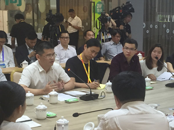 一品威客網創始人、CEO黃國華作為“海峽兩岸青年創業基地”代表參加了座談會,并進行專題發言!拔蚁蛴嶂飨瘏R報了一品威客網通過線上眾包平臺和線下孵化基地結合‘八大免費模式,服務兩岸青年’的模式,幫助海峽兩岸青年創新創業的做法,得到了俞主席的肯定和表揚。”
