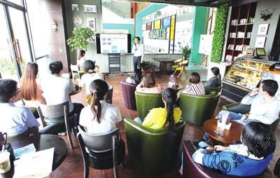 在昆山兩岸青年創(chuàng)業(yè)園啟迪眾創(chuàng)工社內(nèi),路演項目掀起“頭腦風暴”。