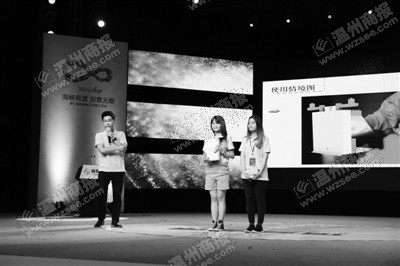 兩岸青年創客工作坊成果交流匯報會上,學生們上臺介紹團隊設計的作品。