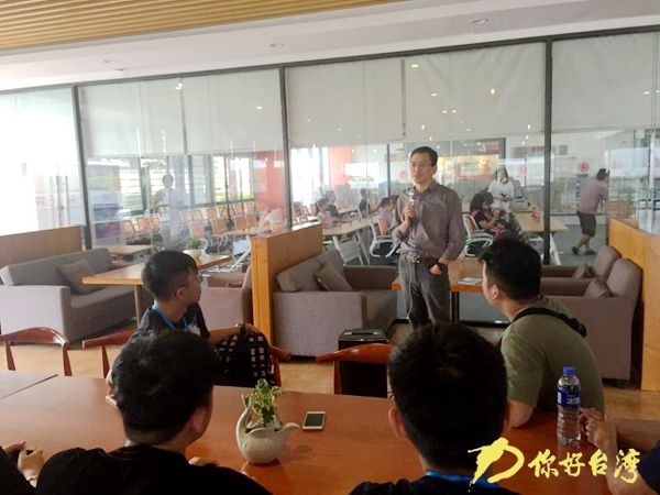 你好臺灣網7月20日消息 參加“臺灣新世代maker訓練營”活動的兩岸青年來到一品威客創客空間,參觀園區及辦公場所。一品創客招商經理陳怡添為大家介紹了他們的項目孵化及投資方面的情況。