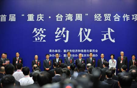 The signing ceremony of economic and trade cooperation projects of the Chongqing-Taiwan Week is held in Chongqing, southwest China, May 28, 2009.