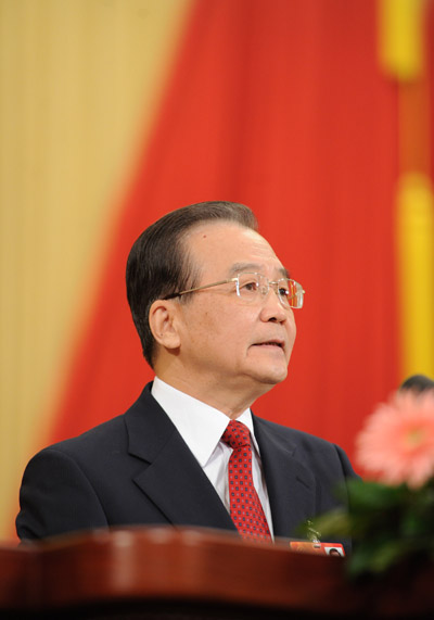 Chinese Premier Wen Jiabao delivers a government work report during the opening meeting of the Fourth Session of the 11th National People's Congress (NPC) at the Great Hall of the People in Beijing, capital of China, March 5, 2011. (Xinhua/Huang Jingwen)