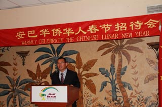 2011年1月30日,駐安提瓜和巴布達(dá)大使劉漢明和夫人焦芳在喬利海灘酒店舉行2011年春節(jié)華人華僑招待會(huì)。當(dāng)?shù)厝A人華僑、中資機(jī)構(gòu)代表、使館全體成員200余人出席。
