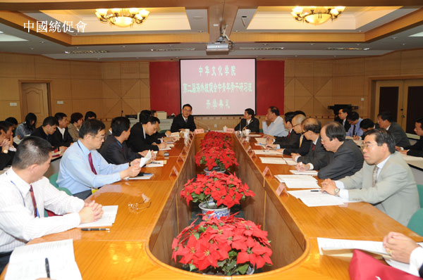 5月21日,中國和平統(tǒng)一促進(jìn)會(huì)在京舉行第二期海外統(tǒng)促會(huì)中青年骨干研修班開班典禮,來自五大洲19個(gè)國家的30多位海外統(tǒng)促會(huì)中青年骨干參加了此次研習(xí)班。研習(xí)班期間,中央統(tǒng)戰(zhàn)部副部長樓志豪、中國社科院臺(tái)灣研究所所長余克禮等將為研習(xí)班學(xué)員授課。學(xué)員將聽取中國特色社會(huì)主義政治體制及和諧社會(huì)解析、臺(tái)灣政局和兩岸關(guān)系現(xiàn)狀及發(fā)展趨勢(shì)、宣傳工作及現(xiàn)代媒體與網(wǎng)絡(luò)宣傳等課程。學(xué)員們還將赴上海參觀世博會(huì)。中國統(tǒng)促會(huì)執(zhí)行副秘書長李路在開班典禮上講話,中國統(tǒng)促會(huì)副秘書長朱京光、傅鐵生、王安南出席開班儀式。
