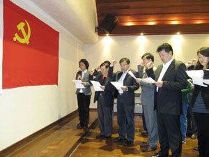 駐圣保羅副總領(lǐng)事邊春剛主持此次活動(dòng),代總領(lǐng)事顧云芬首先帶領(lǐng)全體黨員在黨旗前重溫入黨誓詞,隨后簡(jiǎn)要致辭,她強(qiáng)調(diào),我黨所走過(guò)的光輝歷程充分證明,沒有共產(chǎn)黨就沒有新中國(guó),沒有改革開放所取得的舉世矚目的成就就沒有中巴兩國(guó)關(guān)系的長(zhǎng)足發(fā)展。我們今天舉行重溫入黨誓詞的活動(dòng),就是要銘記我們身在國(guó)外,心系祖國(guó),熱愛黨的事業(yè),堅(jiān)持在黨中央英明正確的領(lǐng)導(dǎo)下,加強(qiáng)學(xué)習(xí),努力完成好本職工作,進(jìn)一步推動(dòng)中巴戰(zhàn)略伙伴關(guān)系,為國(guó)內(nèi)經(jīng)濟(jì)發(fā)展創(chuàng)造良好的外部環(huán)境,不辜負(fù)黨和人民對(duì)我們的期望。