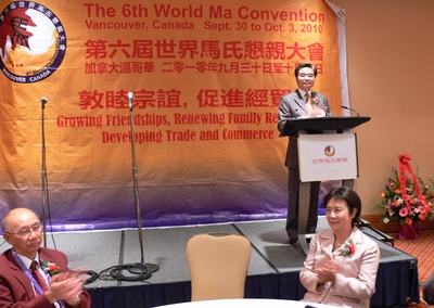 2010年10月1日,第六屆世界馬氏懇親大會在溫哥華隆重開幕,來自世界各地的馬氏宗親,加拿大三級政府代表、大溫地區各僑團代表200多人參加。中國駐溫哥華總領事梁梳根夫婦應邀出席并致辭。