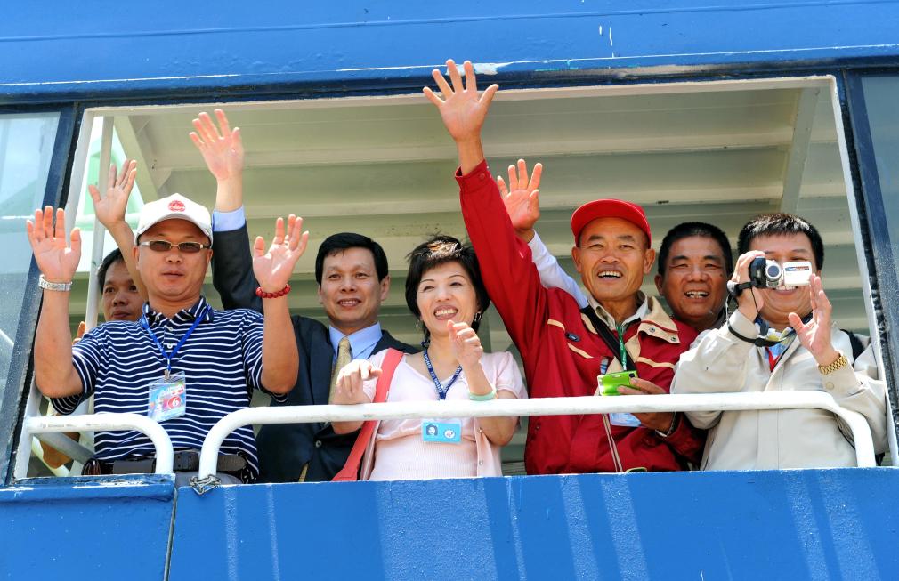 2009年5月15日,350名臺胞乘坐“海洋拉拉號”客輪從臺中港直航福建湄洲島謁祖進香,拉開了首屆“海峽論壇”活動的序幕。新華社記者 張國俊 攝