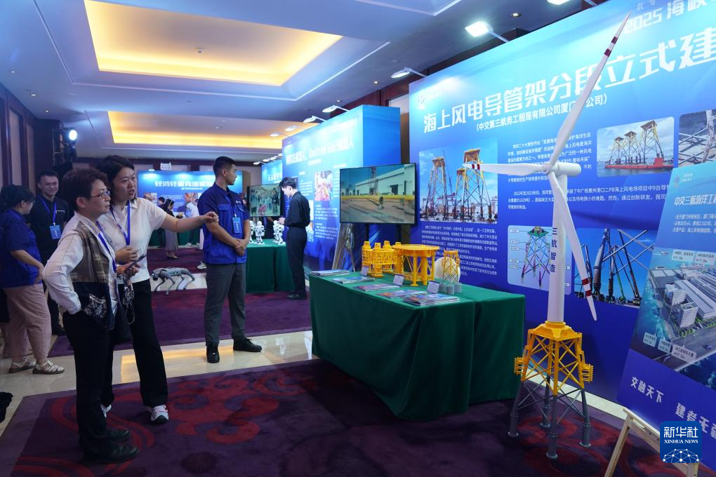 這是6月15日拍攝的2025海峽職工論壇智能高科技產品展示區海上風電導管架分段立式建造展位。新華社發(王鑫攝)