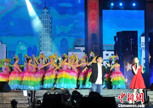 6月7日晚,來自海峽兩岸的青年歌手在歌會上共唱歌曲《兩岸一家親》。張斌 攝