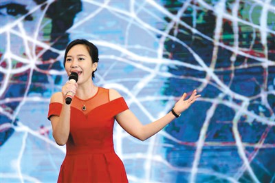 歌手陳姿在現場演繹論壇主題曲《中華一脈》。(主辦方圖)