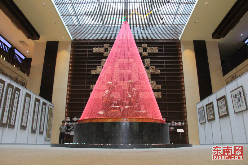 “三脈合一”的雕塑相當(dāng)醒目,大型紅色脈線寓意深遠(yuǎn)