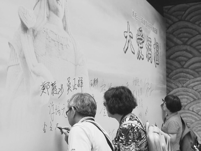海峽兩岸代表在電視紀(jì)錄片《大愛媽祖》開拍看板上簽名見證。