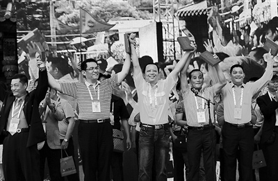 兩岸“同名村”一家親聯(lián)誼活動,近日在廈門市集美區(qū)板橋村舉行,與大陸祖地“同根、同源、同名”的臺灣“同名村”村里長們,與大陸鄉(xiāng)親、宗族長輩共敘親情。新華社記者 張國俊攝
