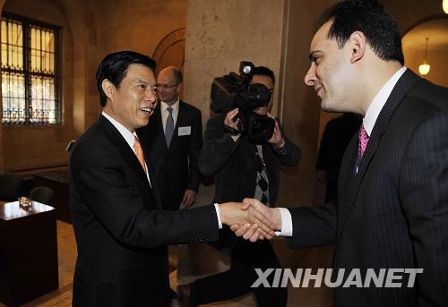 3月24日,在美國首都華盛頓,中國商務部副部長鐘山(左)出席美國工商界舉行的早餐會。鐘山當日在早餐會上發表演講指出,中美應努力尋求和擴大利益匯合點,堅持通過溝通協商妥善處理經貿摩擦。他強調,人民幣升值并非解決中美貿易不平衡的良方。新華社記者張軍攝
