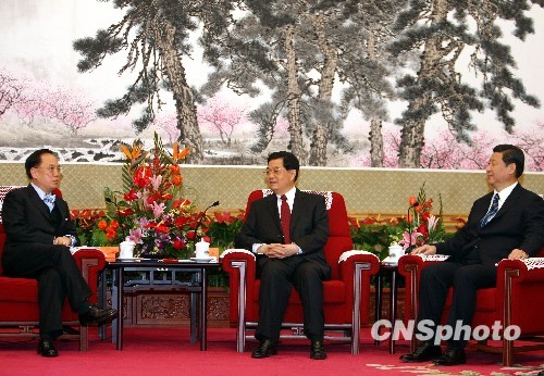 12月28日下午,國家主席胡錦濤在北京中南海會見前來述職的香港特區行政長官曾蔭權,國家副主席習近平等參加會見。 中新社發 任晨鳴 攝