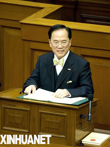 資料圖片:曾蔭權發表他本任期的第三份施政報告。10月14日,香港特區行政長官曾蔭權在特區立法會發表他本任期的第三份施政報告。新華社記者 陳鐸攝