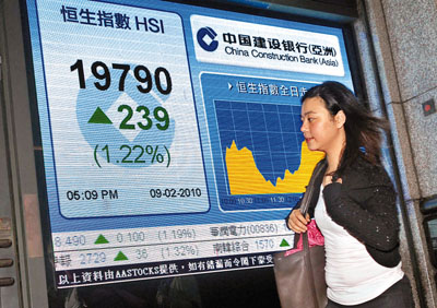 港股結(jié)束3天跌市,9日在內(nèi)銀及地產(chǎn)股造好帶動(dòng)下大幅上揚(yáng),收升239點(diǎn),升幅為1.2%,總成交回升至619.21億元。(圖片來(lái)源:香港文匯報(bào))