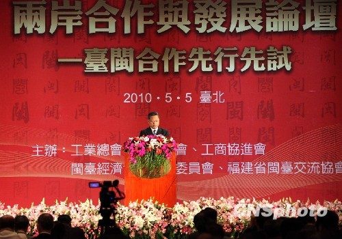 5月5日下午,“兩岸合作與發展論壇——臺閩合作先行先試”在臺北圓山大飯店舉行,福建省長黃小晶、臺灣海基會董事長江丙坤等人發表演講。圖為黃小晶在發表主題演講。 中新社發 董會峰 攝