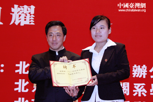 演講結束后,王祖耀先生受聘為北京大學臺灣研究學會2011年度主講人。(中國臺灣網 普燕攝)