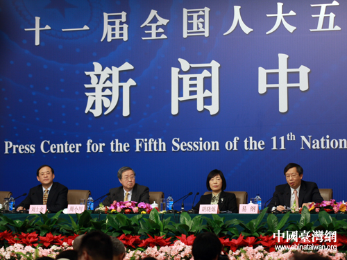 十一屆全國人大五次會議在梅地亞中心舉行記者會,中國人民銀行副行長胡曉煉出席記者會并就兩岸貨幣清算等問題回答記者提問。(中國臺灣網 王偉 攝)