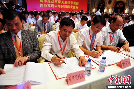 8月13日,由國務院臺灣事務辦公室、江西省政府主辦的第6屆海峽兩岸客家高峰論壇、第11屆贛臺經(jīng)貿(mào)文化合作交流大會在“客家搖籃”江西贛州開幕。中國國民黨榮譽主席吳伯雄攜800余名臺商參會,現(xiàn)場共簽約75個項目,簽約金額達39.4億美元。中新社發(fā) 劉占昆 攝