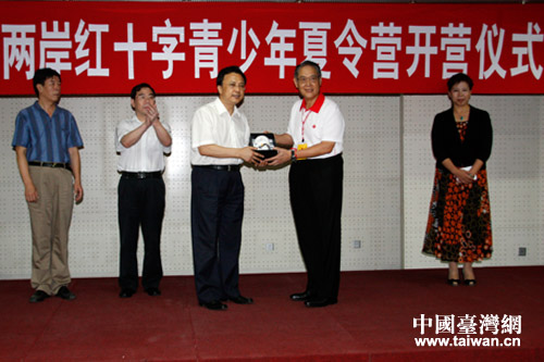 中國臺灣網7月25日北京消息 由中國紅十字會主辦,北京市紅十字會承辦的“2013年海峽兩岸紅十字青少年夏令營”活動25日在北京舉辦開營儀式,來自北京和臺灣兩地大學、高中的60余名紅十字青少年參加了活動。中國紅十字會副會長郭長江、北京市紅十字會常務副會長馬潤海、北京市紅十字會副會長劉娜、臺灣紅十字組織理事趙天星等出席了開營儀式。