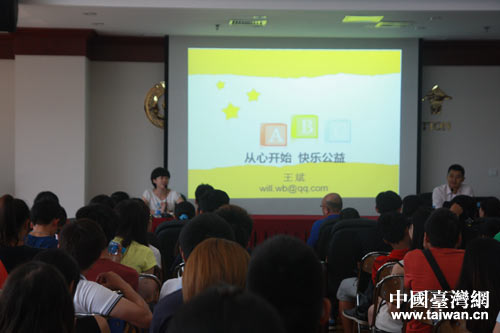 中國臺灣網7月31日北京消息 2013年暑期兩岸青年學生交流活動今天下午在宋慶齡基金會舉行公益講座,來自西南科技大學的王斌副教授與臺灣青年學生共同交流,在教學中分享公益理念,向兩岸學生講解心理救助的重要性。