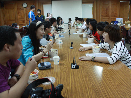 臺灣中山大學(xué)劇藝系的林昀澄與來自清華大學(xué)公共管理學(xué)院的王博雅進行了交流,王博雅良好的口才及對學(xué)業(yè)孜孜以求的精神給林昀澄留下了深刻印象。林昀澄表示,這是自己第一次跟大陸學(xué)生接觸,對大陸學(xué)生積極表達自己及其對學(xué)業(yè)、對知識的渴求很欽佩。