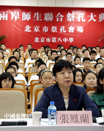北京市臺辦副主任杜德平及北京八中校長張鳳蘭等出席了北京分會場的祭孔儀式。