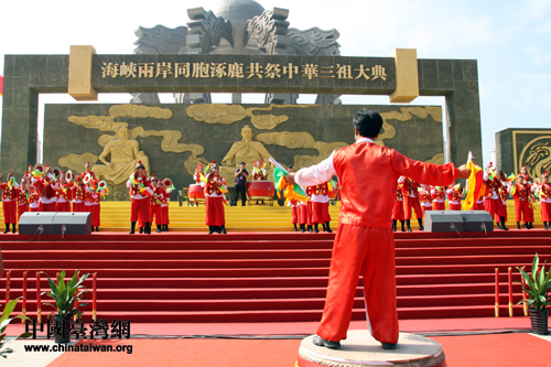 全國政協副主席、中央統戰部長杜青林宣布第四屆海峽兩岸同胞涿鹿共祭中華三祖大典正式開始。在全體肅立中,按祭祀傳統擊鼓鳴鐘之后,海協會長陳云林、中國國民黨副主席林豐正等兩岸同胞代表在中華三祖像前敬獻花籃、上香祭拜,并敬獻了三牲、五谷、百果等祭品,來表達對三祖崇高敬意,祈求天下太平、六畜興旺、祈福國泰民安、五谷豐登,也寓意三祖子孫生生不息、血脈相連、代代相傳。