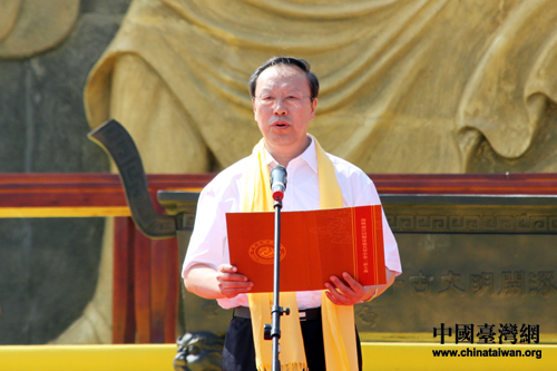 全國政協副主席、中央統戰部部長杜青林宣布第四屆海峽兩岸同胞涿鹿共祭中華三祖大典正式開始。(中國臺灣網 王偉 攝)