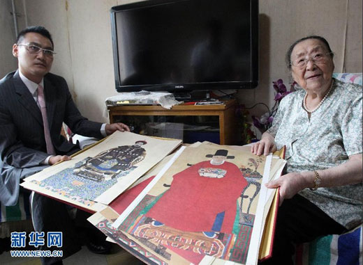 8月14日,孔子77代嫡孫女孔德懋(右)在北京家中介紹明清孔子嫡孫后裔畫像。當日,生活在臺北市的孔子79代嫡孫孔垂長一行五人在首次在北京與孔子77代嫡孫女、95歲高齡的孔德懋女士相聚。孔垂長一行是首次代表已故孔子77代嫡孫孔德成來內地在山東曲阜市孔林祭祖后到北京與孔德懋女士相聚。新華社記者 汪永基 攝