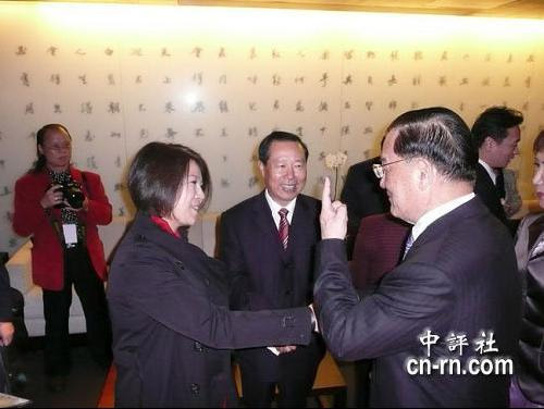 王在希在向連戰介紹孔東梅時,除了介紹孔東梅的公司之外,還加了一句“她是一個特別的人”,連戰馬上接口說,“我知道,我在報紙上都看到了,她很有名”,連戰還豎起一根指頭來加強語氣。