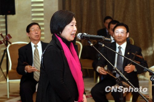 11月21日,出席海峽兩岸京劇藝術(shù)論壇的臺(tái)灣海基會(huì)前董事長(zhǎng)辜振甫遺孀、臺(tái)灣中華婦聯(lián)總會(huì)主任委員辜嚴(yán)倬云,在天津舉行的兩岸京劇票友聯(lián)誼活動(dòng)中,飽含深情地講述了自己學(xué)習(xí)京劇的過程,并現(xiàn)場(chǎng)演唱了程派代表作《鎖麟囊》選段。 中新社發(fā) 郭曉帆 攝