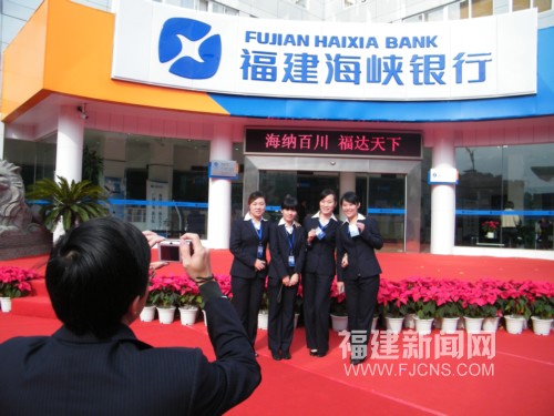 12月7日,福州市商業(yè)銀行正式更名為福建海峽銀行,這是大陸首家冠名“海峽”字眼的銀行,將進(jìn)一步加強(qiáng)與臺(tái)灣金融機(jī)構(gòu)的交流合作,積極實(shí)現(xiàn)兩岸金融業(yè)務(wù)合作的先行先試。圖為該行工作人員在剛剛揭牌后的福建海峽銀行總行大樓前留影。(詹托榮 攝)