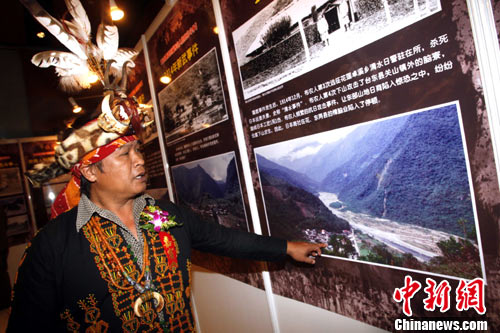 10月25日,“紀念臺灣光復65周年臺灣少數民族抗日史實圖片展”在北京臺灣會館開幕,來自臺灣排灣族的謝家定參觀展覽,并講述當年先輩們抗日的故事。該展由全國臺聯、北京市臺聯及臺灣原住民出版社聯合舉辦,展覽共分27個單元,通過約500張歷史圖片及2萬余字的傳述,呈現了自日本帝國主義侵占臺灣開始至1933年間臺灣少數民族各族群的60余起抗日事件。這些珍貴的歷史圖片絕大部分都是第一次面向公眾。