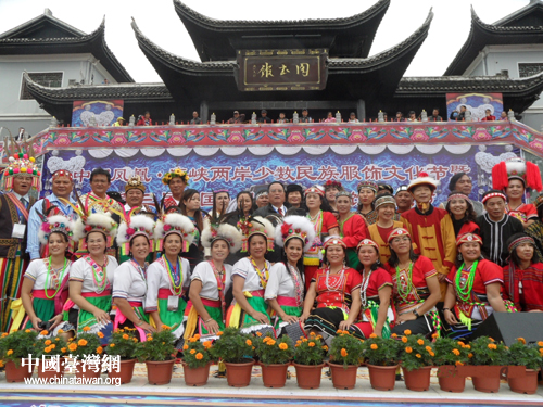 中國(guó)臺(tái)灣網(wǎng)11月2日鳳凰消息 日前,“中國(guó)鳳凰·海峽兩岸少數(shù)民族服飾文化節(jié)暨第三屆中國(guó)·鳳凰苗族銀飾文化節(jié)”在湖南省鳳凰縣舉行,臺(tái)灣58名同胞組成臺(tái)灣代表隊(duì)參加活動(dòng)。