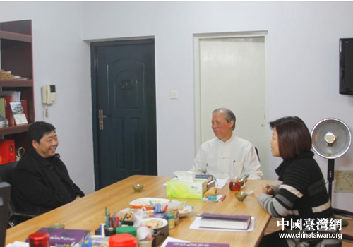 安陽市臺(tái)辦主任李新明與吳秋文先生、丁美美女士親切交談。(圖片來源:安陽市臺(tái)辦)