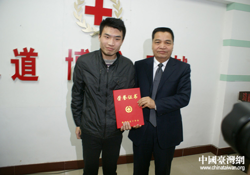 小何被授予紅十字會榮譽會員稱號。(圖片來源:濟南市臺辦)