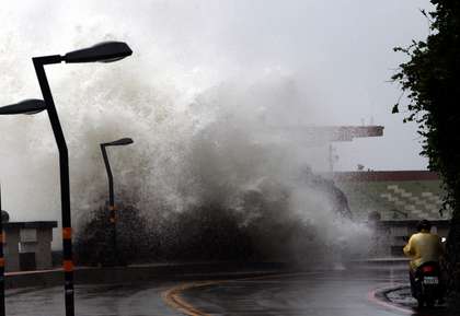 “泰利”帶來的大浪沖擊防護堤。圖片來自臺媒