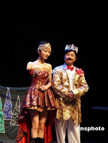 11月30日晚,臺灣第十二屆“弦月之美”身障人士才藝大展在臺北舉行,被臺灣人稱為“斷臂美女”的鄧美芳(左)在默劇中飾演白雪公主。 中新社發 周兆軍 攝