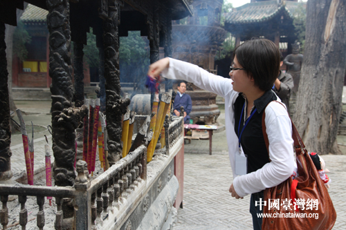中國(guó)臺(tái)灣網(wǎng)8月23日運(yùn)城消息 感受中華道德文化的源頭,體味中華傳統(tǒng)美德的脈絡(luò),22日,臺(tái)灣青年團(tuán)一行來(lái)到了位于山西省運(yùn)城市的舜帝陵和關(guān)公廟,祭拜炎黃子孫共同的祖先。